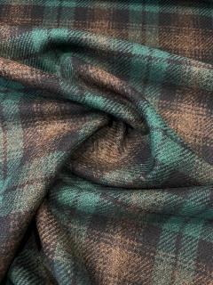 Augstas klases skotu tipa 100% vilnas audums ar klasisku zaļi-brūnu rūtotu rakstu ir lieliski piemērots siltu, elegantu un izturīgu apģērbu šūšanai.