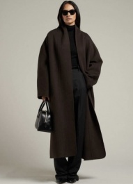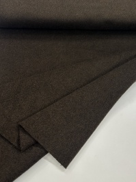 Luksusa klases 100% vilnas audums tumši brūnā tonī, kas izceļas ar izsmalcinātu mīkstumu, elegantu kritumu un perfektu siltumu. Šis augstvērtīgais materiāls apvieno vilnas izturību, nodrošinot īpaši patīkamu sajūtu, siltumu un izcilu kvalitāti.