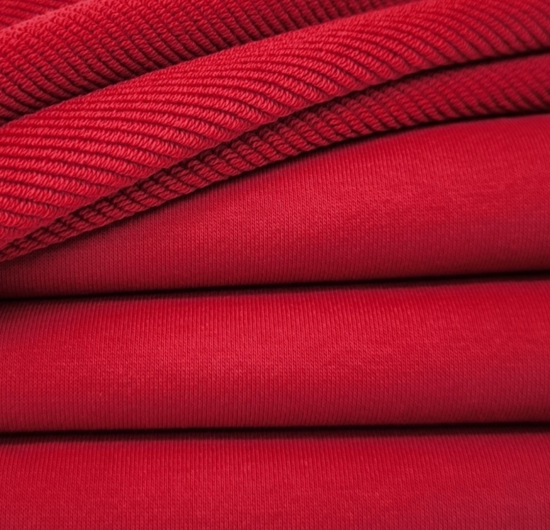 Augstas kvalitātes vienkrāsains kokvilnas 3 diegu cilpiņtrikotāžas audums, kas izceļas ar savu blīvumu un elastību. Pateicoties pinuma struktūrai 45 grādu leņķī, audums lieliski saglabā formu - ceļi un sēžamvieta neizstaipas pat pēc vairākkārtējas valkāšanas.