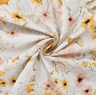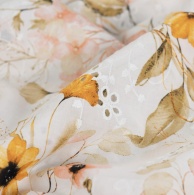 Vasara - kokvilnas batista audums ar digitālo druku un izšuvumu.