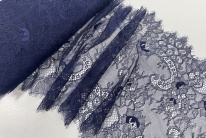Smalka franču mežģīne ar skaistu pinumu un cakiņām apās malās. Neelastīga.