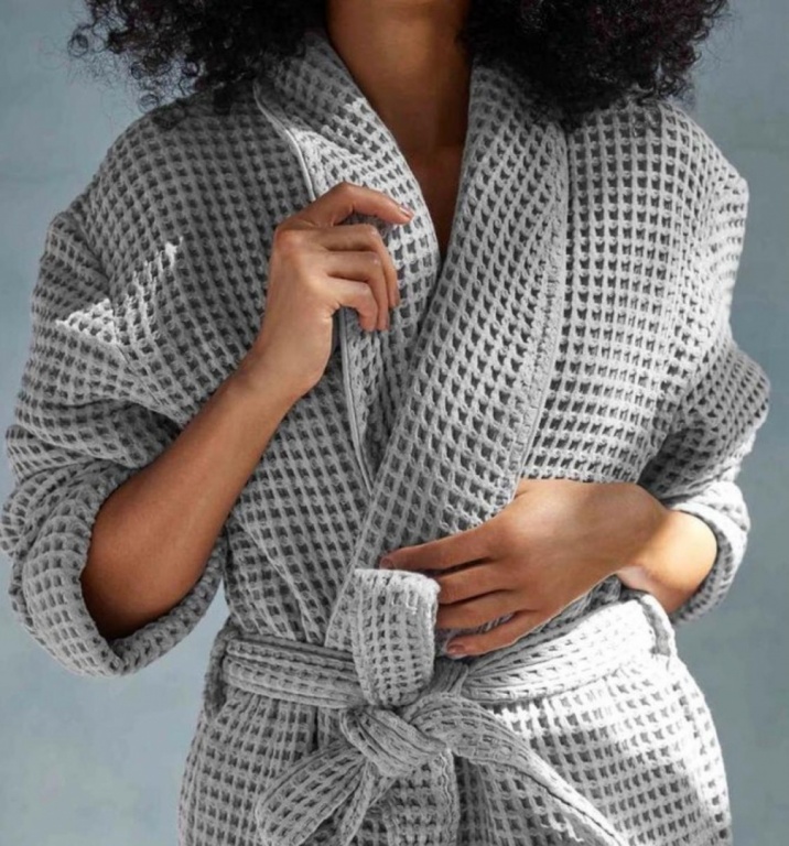 Vienkrāsu kokvilnas audums (vafeļaudums). Audums ir elpojošs un absorbē mitrumu.